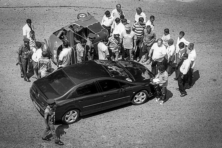 Si petugas hotel tersebut menjelaskan bahwa apabila terjadi tabrakan, khususnya di jalanan Kota Colombo, maka penanganannya akan diserah kepada pihak polisi. Kendaraan yang terlibat tabrakan pun dibiarkan dulu (tidak dipindahkan) sampaikan datang petugas polisi atau pihak lain yang diperlukan, misalnya dari pihak asuransi, supaya bukti-bukti nya tetap terekam sebagaimana adanya. Baru saya tahu, jika pengendara sepeda motor yang tadi berurusan dengan pemilik sedan adalah petugas asuransi.