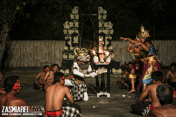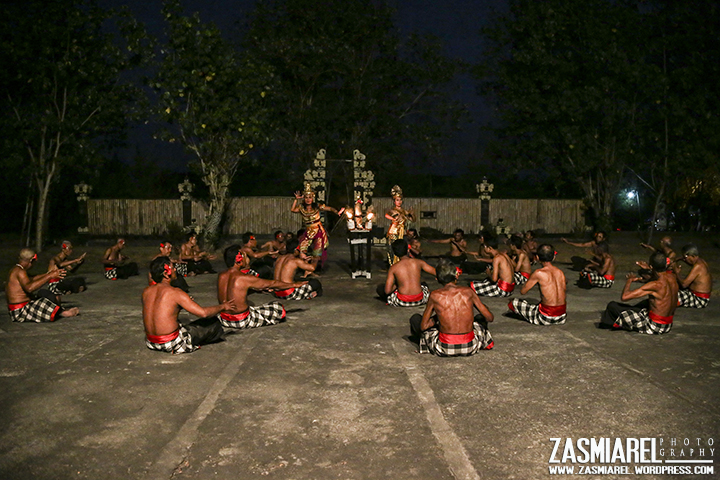 DI Tanah lot sendiri pementasan Tarian Kecak dilakukan tiap hari, waktunya sekali lagi setelah matahari terbenam. Untuk dapat menyaksikan tarian kecak ini kita harus merogoh kocek tambahan sebesar lima puluh ribu. Lokasi pertunjukkan tidak terlalu besar, tepatnya sebesar lapangan bulu tangkis. Selain hadir untuk menyaksikan niat utama saya adalah untuk mengabadikan. Agak khawatir juga dengan kondisi pencahayaan yang sangat minim. Namun karena sudah bertekad bagaimana caranya ya harus bisa memotret.
