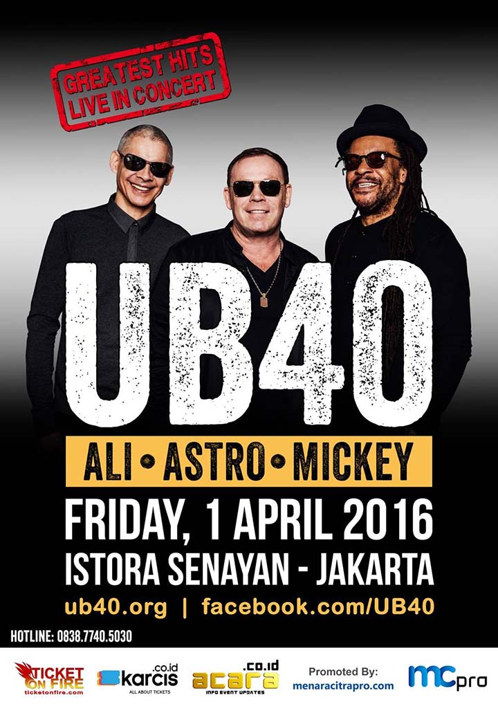 Silahkan check akun facebook.com/UB40 yang menyatakan:” We’ve added another date to our tour, Jakarta here we come! Stay tuned for tickets… http://ub40.org/ub40_live/ ”