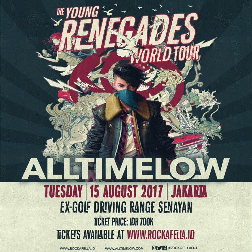 Sebagaimana dilansir sebelumnya, kedatangan group band asal Maryland, Amerika Serikat ini dalam rangka promosi album terbaru mereka “Last Young Renegade” yang rilis pada Juni 2017 lalu. Konser All Time Low kali ini akan digelar pada 15 Agustus 2017 mendatang bertempat di ex Golf Drive Range Senayan, Jakarta. Sesuai dengan judul albumnya konser mereka ini diberi tajuk “The Young Renegades World Tour”.