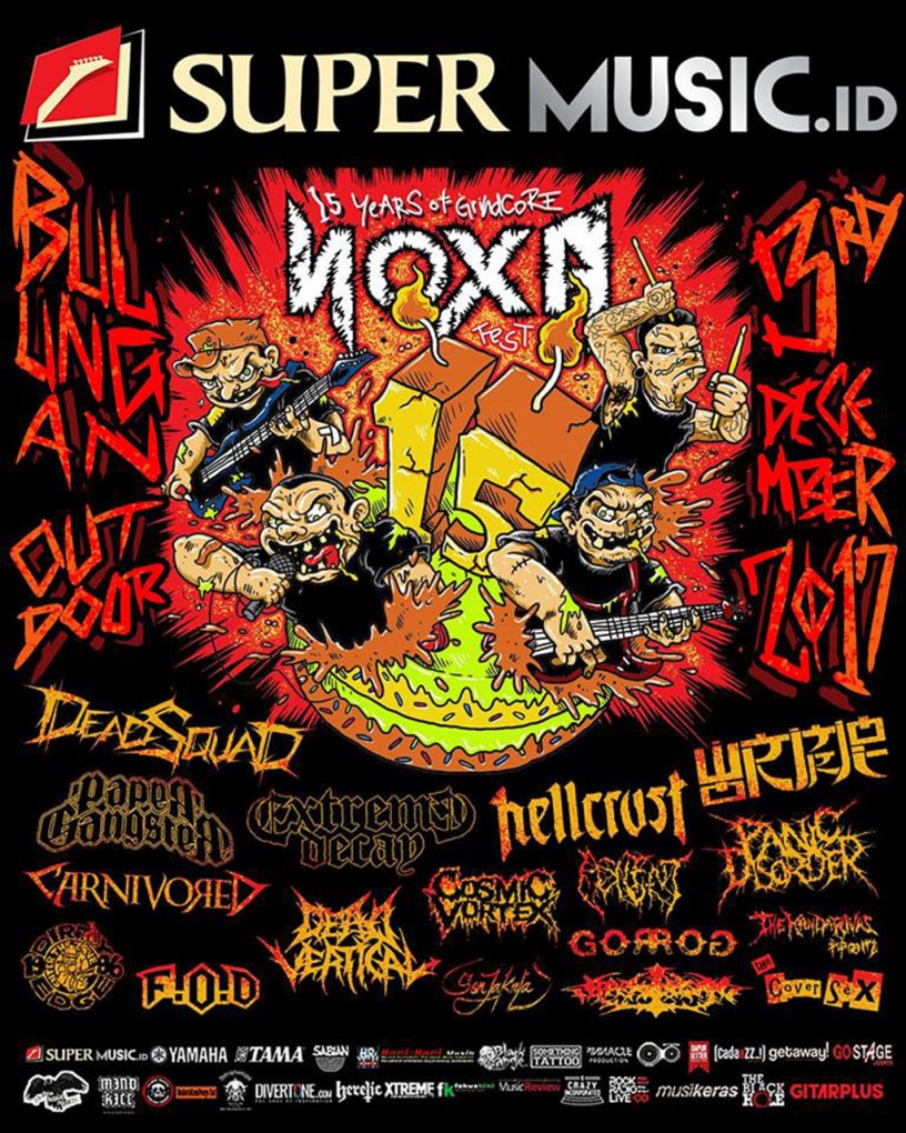 GO-STAGE.com – Supermusic.ID kembali menggelar festival musik yang diberi tajuk NOXA Fest 15 Years of Grindcore. Festival ini rencananya akan diadakan pada Minggu, 3 Desember 2017 bertempat di Bulungan Outdoor, Blok M, Jakarta Selatan.