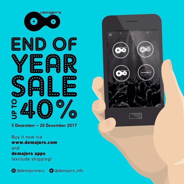Bersamaan dengan rilisnya aplikasi ini, demajors juga mengadakan promo “End Year Sale” dengan potongan harga mulai dari 10% hingga 40% untuk seluruh rilisan demajors. Program promo ini berlangsung mulai tanggal 5 Desember hingga 20 Desember 2017 untuk pembelian melalui aplikasi dan juga website www.demajors.com. “Ini merupakan salah satu cara kami menunjukan rasa terima kasih kepada pecinta musik Indonesia yang selama ini telah memberikan dukungannya kepada demajors, ibaratnya seperti kado akhir tahun lah.” Kata Aldila Karina, Project Manager dari demajors.