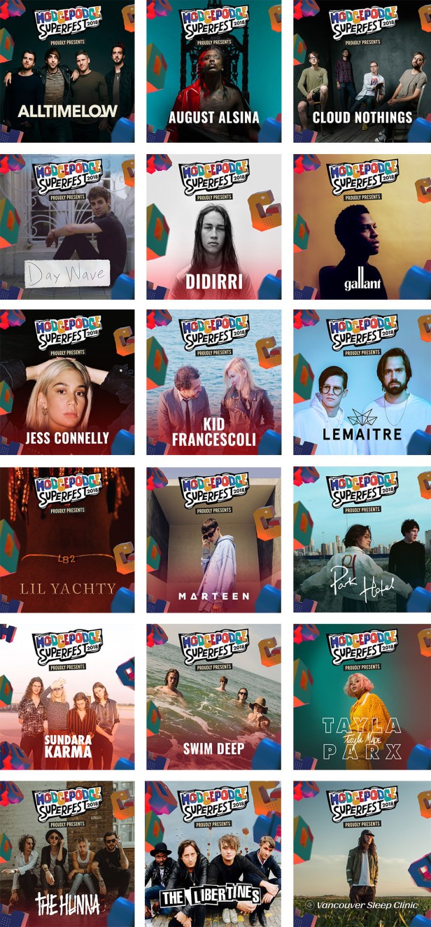 Artis internasional yang telah mengkonfirmasi kehadirannya antara lain grup musik rock asal Inggris yaitu The Hunna, artis pop dengan sentuhan old school R&B asal Amerika yaitu Marteen dan artis independen asal Filipina yaitu Jess Connelly. Nama-nama tersebut melengkapi lineup yang telah diumumkan sebelumnya dan akan tampil di Hodgepodge Superfest tanggal 1-2 September 2018 di Allianz Ecopark Ancol. Lineup tersebut adalah The Libertines, All Time Low, Lil Yachty, Gallant, August Alsina, Lemaitre, Day Wave, Cloud Nothings, Tayla Parx, Sundara Karma, Vancouver Sleep Clinic, Swim Deep, Park Hotel, Kid Francescoli, dan Didirri untuk artis internasional dan The Brandals, 70’s OC, The Trees & The Wild, The Barefood, Soft Animal, The Sigit, Tomorrow People Ensemble x Eka Anas dan Onar untuk artis Indonesianya.