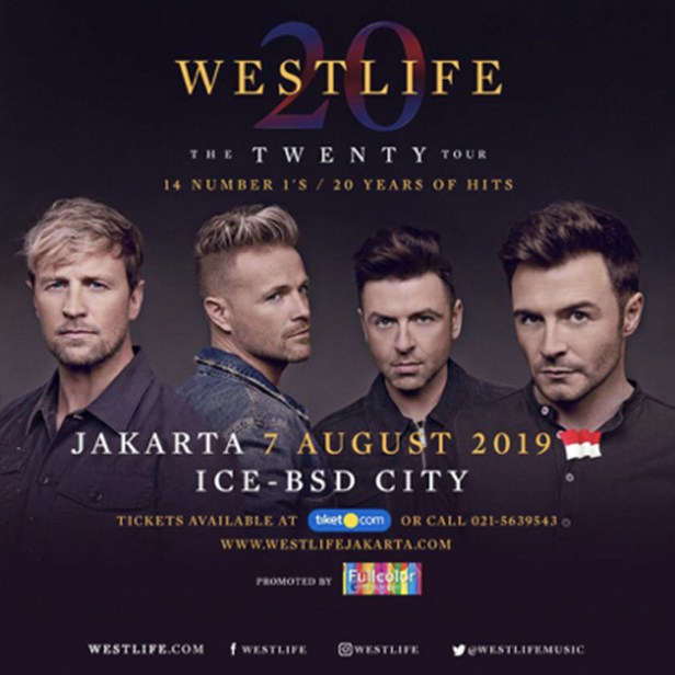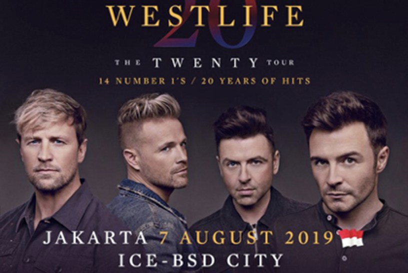 Westlife reuni kembali, setelah 7 tahun masa rehat (Hiatus), akhirnya mereka akan kembali hadir dengan tur terbaru-nya yang akan berjalan mulai tahun ini. Dalam rangka merayakan 20 tahun karir musiknya, Westlife akan hadir dengan tajuk konser ‘Westlife – The Twenty Tour 2019’, pertunjukan ini akan dimulai di Belfast pada tanggal 25 Mei mendatang hingga tanggal 5 Juli 2019 di Dublin, Irlandia. Setelah itu akan dilanjutkan dengan tur konser di Asia termasuk singgah ke Indonesia, Westlife – The Twenty Tour 2019 akan tampil di Indonesia pada hari Rabu 07 Agustus 2019 pukul 20.15 wib di Indonesia Convention Exhibition – ICE BSD City.