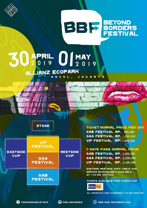 GO-STAGE.com – Setelah sukses dengan konser Kygo di Jakarta tahun lalu, MME Entertainment mempersembahkan sebuah festival dengan konsep musik dan penggarapan yang baru, Beyond Borders Festival (BBF) dipersembahkan khusus untuk pecinta musik R&B dan Hip Hop yang akan diadakan pada Hari Selasa dan Rabu tanggal 30 April dan 1 Mei 2019 (bertepatan dengan hari Labour Day) di Allianz Eco Park Ancol, Jakarta, Indonesia.