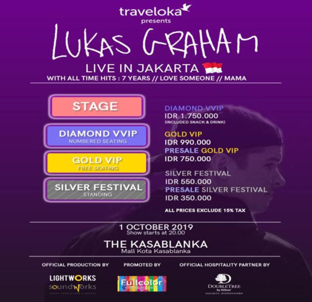 Konser perdana Lukas Graham ini dipersembahkan oleh Traveloka, dipromotori oleh Fullcolor Entertainment dan didukung oleh DoubleTree by Hilton Jakarta – Diponegoro.
