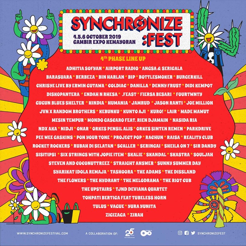 GO-STAGE.com – Tepat pada 16 Agustus 2019 lalu, secara resmi pada fase ke-4 mengumumkan 77 nama artis yang akan tampil di Synchronize Fest 2019.