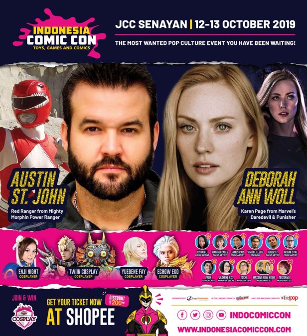 Andriani Tirtawisata, Project Manager Shopee Indonesia Comic Con, Reed Panorama Exhibitions mengatakan bahwa “Setelah menghadirkan pemeran Power Ranger Hijau di tahun 2017, buat generasi 90an dan pecinta serial power ranger, kami akan ajak kembali bernostalgia bersama pemeran Power Ranger Merah “Austin St John” dan tidak hanya itu saja Shopee Indonesia Comic Con juga memastikan kehadiran salah satu cast dari TV Serial Marvel DareDevil dan The Punishers “ Deborahh Ann Woll” untuk pecinta komik, James Raiz Hendry Prasetya dan Ardian Syaf telah memastikan kehadirannya di acara kami ini”.