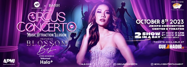 New Live Entertainment mempersembahkan Circus Concerto featuring Blossom BCL, didukung oleh the official sponsor: Telkomsel Halo+. Sebuah konser yang tak hanya menampilkan musik berkualitas tinggi, tetapi juga atraksi panggung yang memukau dengan ilusi yang spektakuler dalam satu panggung yang megah, Minggu 8 Oktober 2023 di JIEXPO Convention Centre & Theater dengan 2 jadwal show, Sore pukul 16.00 WIB dan Malam pukul 20.00 WIB.