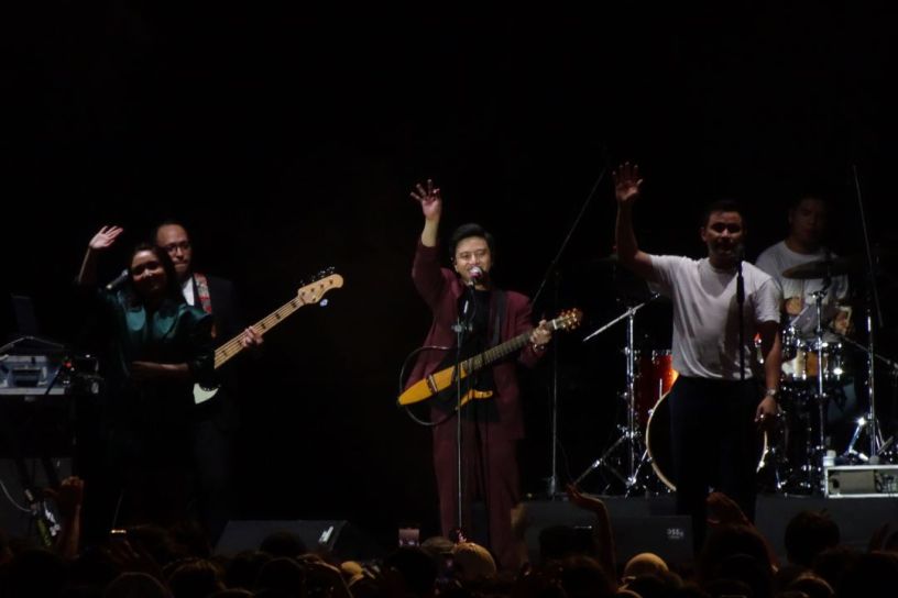 “Terima kasih karena dua lagu pertama tadi teman-teman sangat menikmatinya. Terima kasih banyak, dan apapun itu genrenya, kami harap teman-teman semua harus bersenang-senang, setuju? Semua harus bernyanyi,” tutur Febrian yang berinteraksi dengan penonton.
