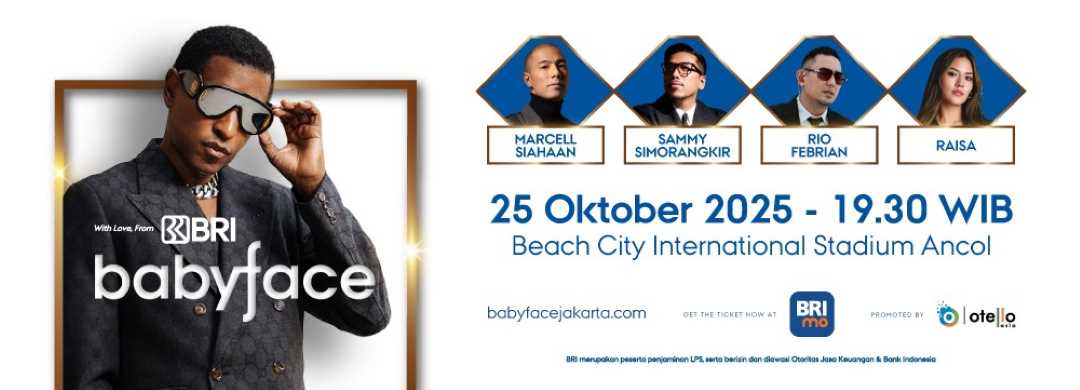 GO-STAGE.com – Dalam 2 hari menjelang konser internasional yang sangat dinanti, “With Love From BRI Presents Babyface – Live in Jakarta 2025” siap memukau penonton di Beach City International Stadium (BCIS), Ancol, Jakarta. Konser yang dipersembahkan oleh PT Bank Rakyat Indonesia (Persero) Tbk (BRI), Otello Asia, dan Enjoy Live Experience ini akan menghadirkan pengalaman musik kelas dunia bersama Babyface, sang legenda peraih 13 Grammy Awards.