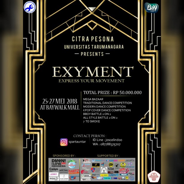 SPARTA (Spirit Art of Tarumanaga) 2018: EXYMENT: Express Your Movement, diselenggarakan oleh Cipta Pesona Universitas Tarumanagara, Baywalk Mall, Pluit, Jakarta Utara, Indonesia, 25 – 27 Mei 2018