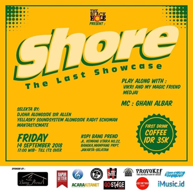 SHORE The Last Show Case, diselenggarakan oleh The BLACK HOLE, Kopi Bang Prend, Kemang Utara 22, Jakarta, Indonesia, 14 September 2018.