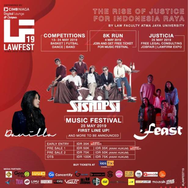 10th LAW FESTIVAL 2019 “The Rise of Justice for Indonesia Raya”, diselenggarakan oleh Fakultas Hukum Universitas Atmajaya, Jakarta, Sport Hall UNIKA Atma Jaya, Semanggi, Jakarta, Indonesia, 4-25 Mei 2019.