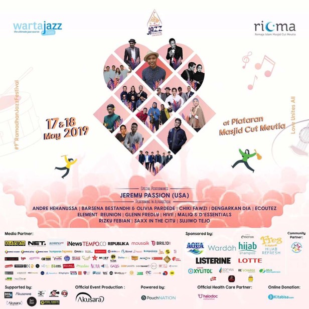 The 9th RAMADHAN JAZZ FESTIVAL 2019, diselenggarakan oleh Remaja Islam Masjid Cut Meutia (RICMA), Plataran Masjid Cut Meutia, Cikini, Jakarta, Indonesia, 17-18 Mei 2019.