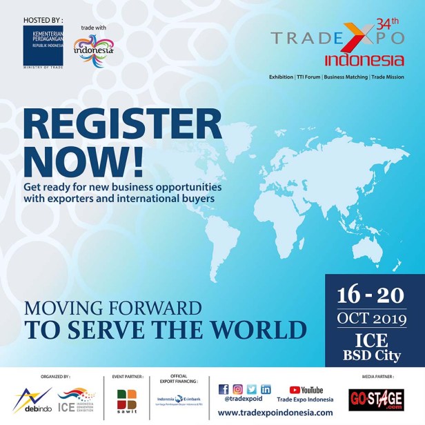 TRADE EXPO INDONESIA 2019 diselenggarakan oleh PT. Debindomulti Adhiswati, bertempat di Indonesia Convention Exhibition (ICE) BSD-City Tangerang, Banten, Indonesia, 16 – 20 Oktober 2019.