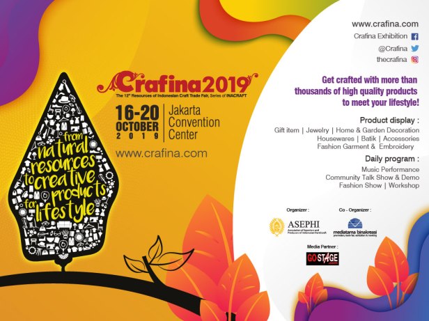 CRAFINA 2018 – The 11th Resources of Indonesian Craft Trade Fair 2018, series of INACRAFT, diselenggarakan oleh ASEPHI, Jakarta Convention Center (JCC), Senayan, Jakarta, Indonesia, 10 – 14 Oktober 2018.
