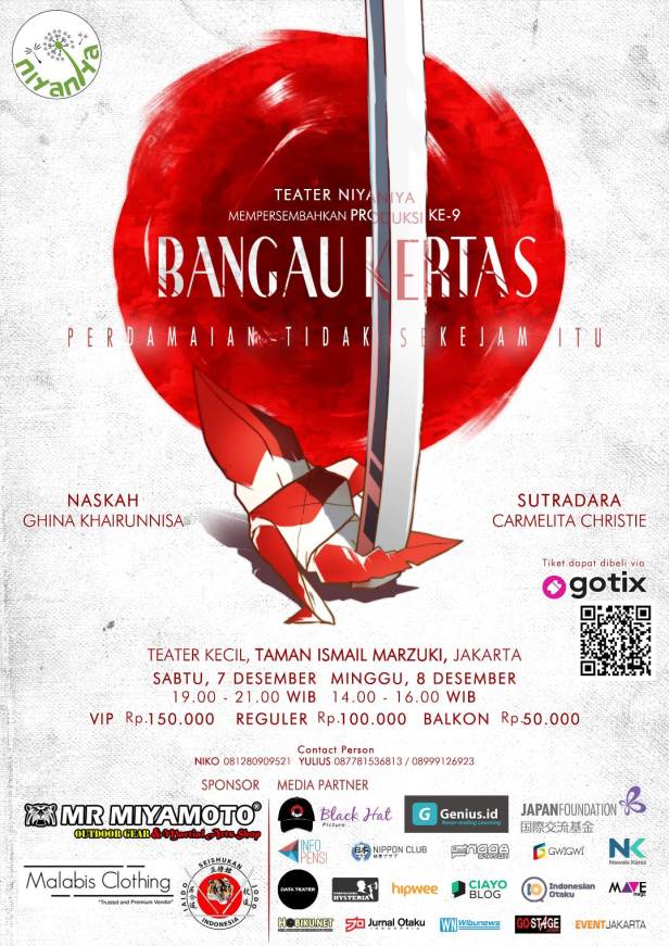 Pementasan “BANGAU KERTAS” Perdamaian Tidak Sekejam Itu, diselenggarakan oleh TEATER NIYANIYA, bertempat di Teater Kecil, Taman Ismail Marzuki, Jakarta, Indonesia, 7 & 8 Desember 2019.